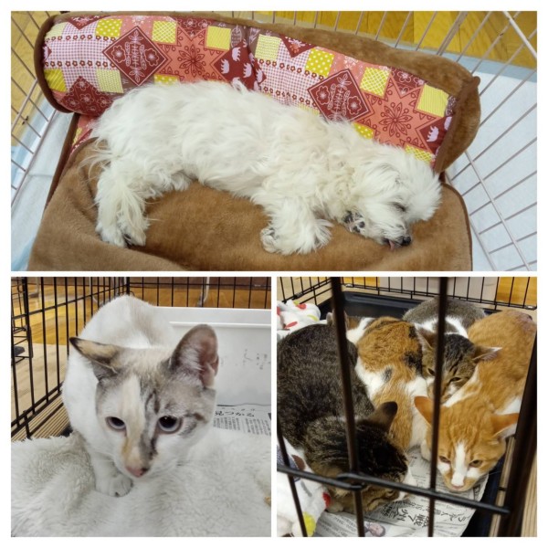 元気なあまり来場者の方に鳴いてアピールする子猫、のんびり寝て過ごす犬、兄弟猫にくっついて固まってしまった猫、様々でした。